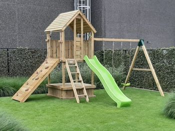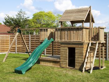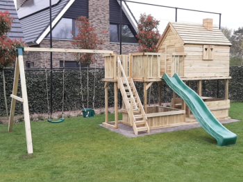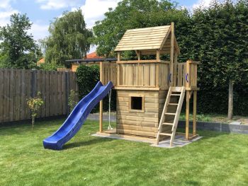 Onze speeltoestellen bestaan uit grote prefab panelen, een groot gedeelte van het speeltoestel is reeds voorgemonteerd in onze werkplaats.