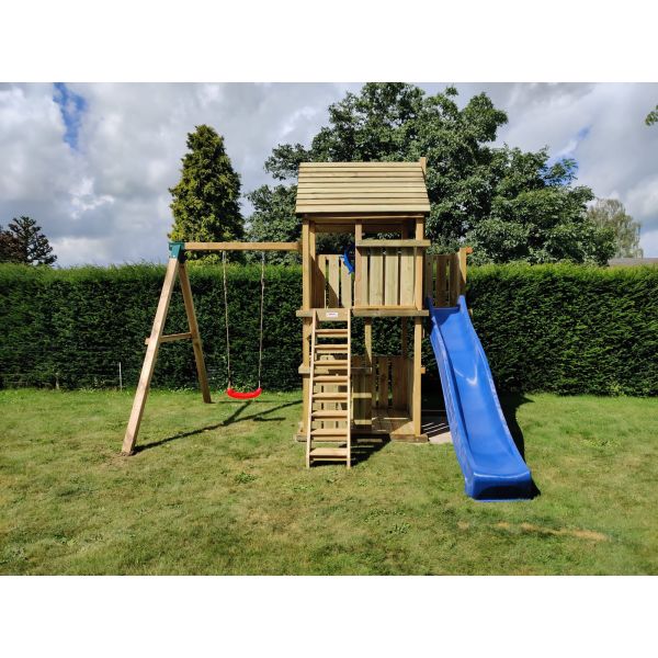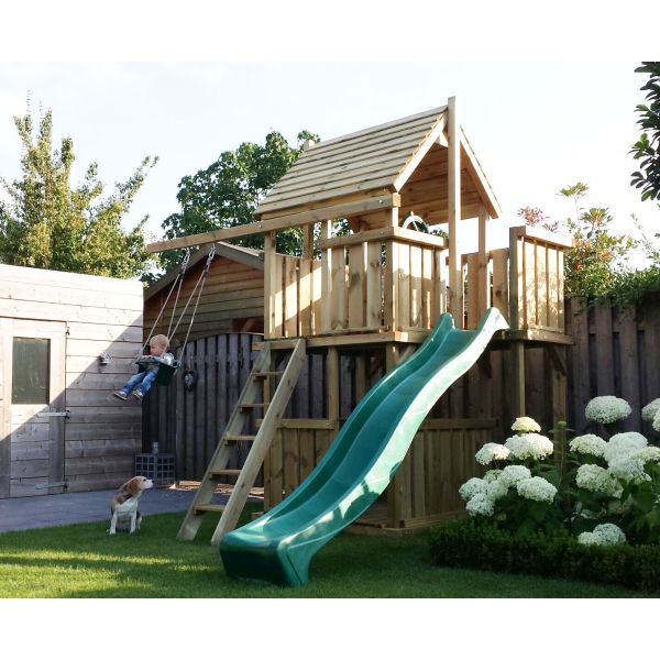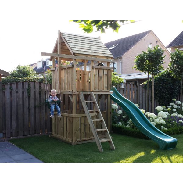 Je kunt zelf het speeltoestel uitbreiden met extra onderdelen (aanbouwschommel, klimwand etc.) of extra's (trapleuning, marktkraam etc.). Vergeet niet de schommelzitjes en enkele leuke accessoires mee te bestellen!