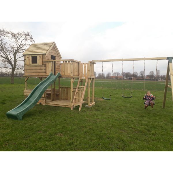 Je kunt zelf het speeltoestel uitbreiden met extra onderdelen (aanbouwschommel, klimwand etc.) of extra's (trapleuning, deur, luikjes etc.). Vergeet niet de schommelzitjes en enkele leuke accessoires mee te bestellen!