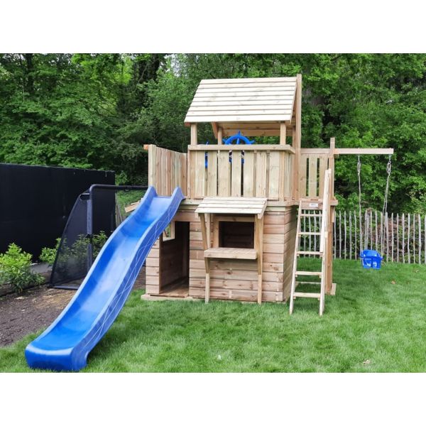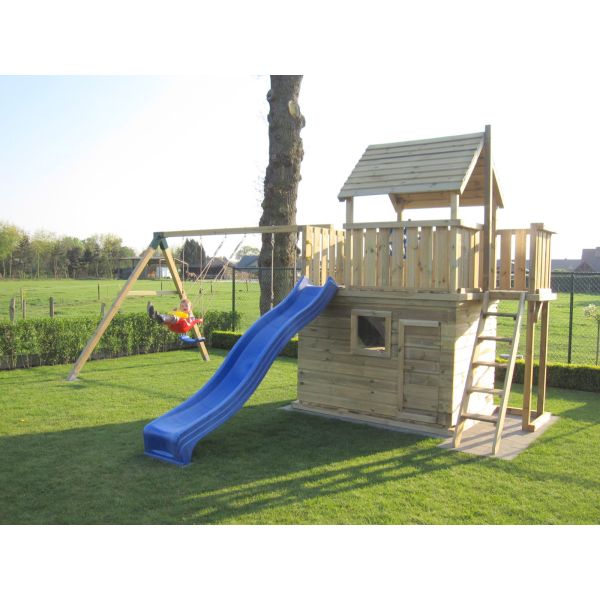 Je kunt zelf het speeltoestel uitbreiden met extra onderdelen (aanbouwschommel, klimwand etc.) of extra's (trapleuning, deur, luikjes etc.). Vergeet niet de schommelzitjes en enkele leuke accessoires mee te bestellen!