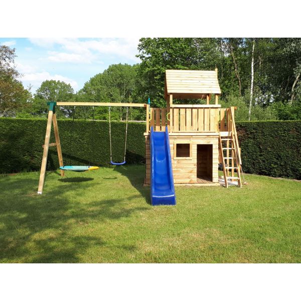 Bij de bestelling kan er gekozen worden om een aanbouw schommel toe te voegen. Voor de schommel zijn vele schommel en klimaccessoires leverbaar (ook leuk voor verjaardagen en sinterklaas/kerst).
