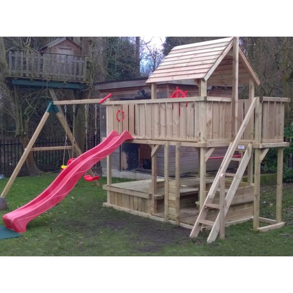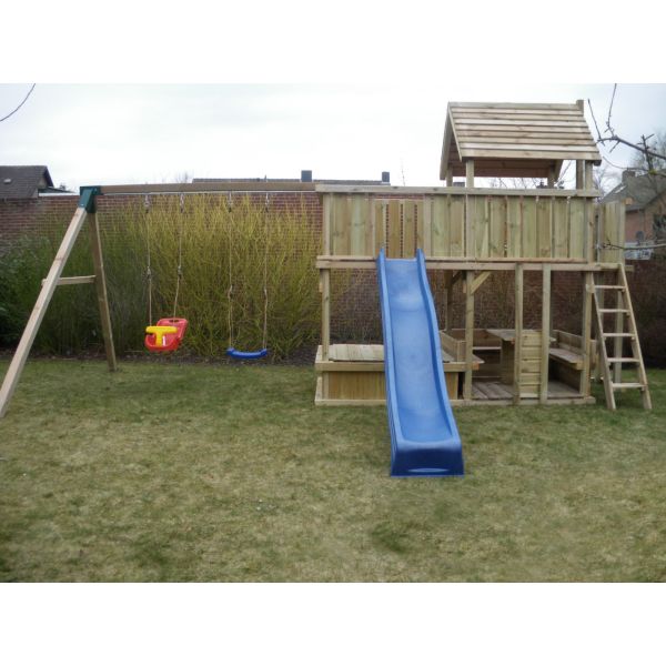 Je kunt zelf het speeltoestel uitbreiden met extra onderdelen (aanbouwschommel, klimwand etc.) of extra's (trapleuning, zandbakdeksel, etc.). Vergeet niet de schommelzitjes en enkele leuke accessoires mee te bestellen!