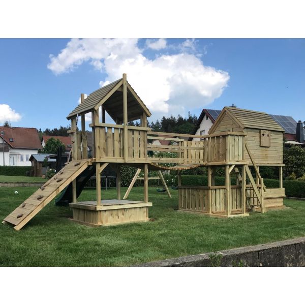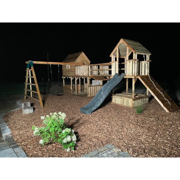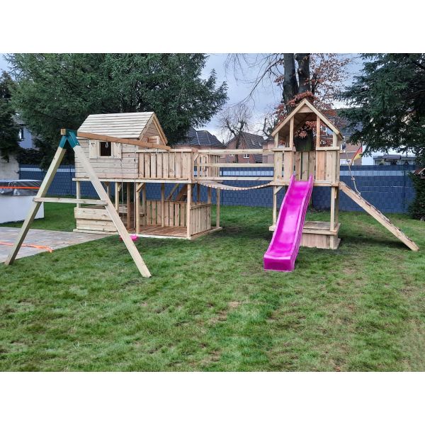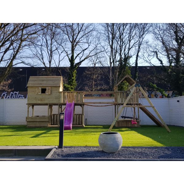 Je kunt dit zelf aanvullen met extra aanbouwdelen (klimnet/-wand, aanbouwschommel etc.) of extra's (deur, luikjes etc.). Vergeet ook niet de schommelzitjes en enkele leuke accessoires bij te bestellen!