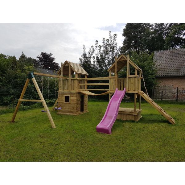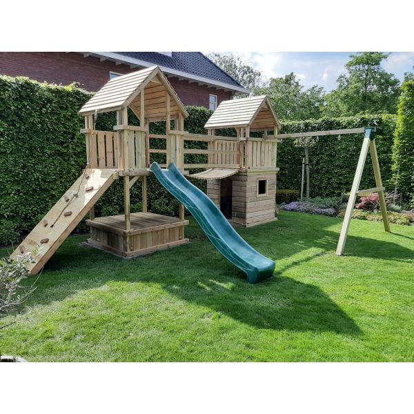 Je kunt dit zelf aanvullen met extra, alternatieve aanbouwdelen (klimnet/-wand, aanbouwschommel etc.) of extra's (deur, luikjes etc.).