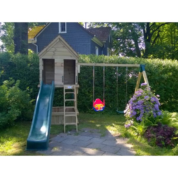 Je kunt zelf het speeltoestel uitbreiden met extra onderdelen (aanbouwschommel, klimwand etc.) of extra's (trapleuning, luikjes etc.). Vergeet niet de schommelzitjes en enkele leuke accessoires mee te bestellen!