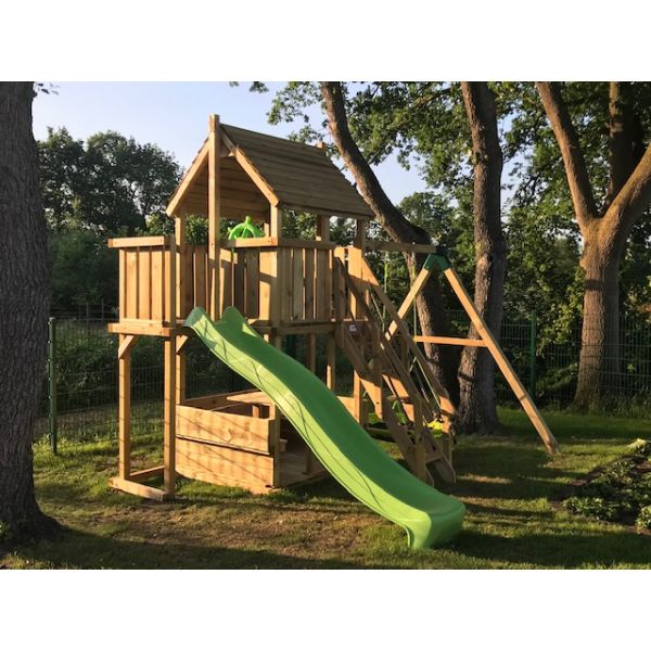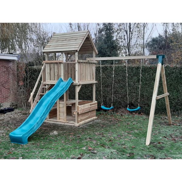 Je kunt zelf het speeltoestel uitbreiden met extra onderdelen (aanbouwschommel, klimwand etc.) of extra's (trapleuning, schoorsteen etc.). Vergeet niet de schommelzitjes en enkele leuke accessoires mee te bestellen!
