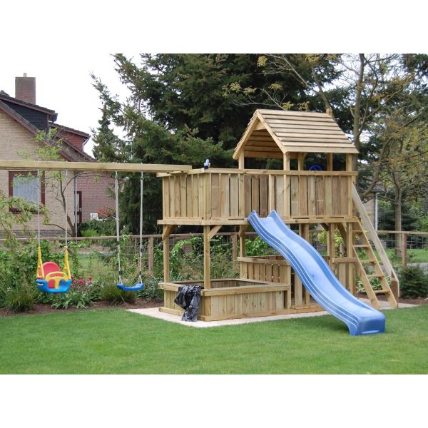 Je kunt zelf het speeltoestel uitbreiden met extra onderdelen (aanbouwschommel, klimwand etc.) of extra's (trapleuning, zandbakdeksel, etc.). Vergeet niet de schommelzitjes en enkele leuke accessoires mee te bestellen!