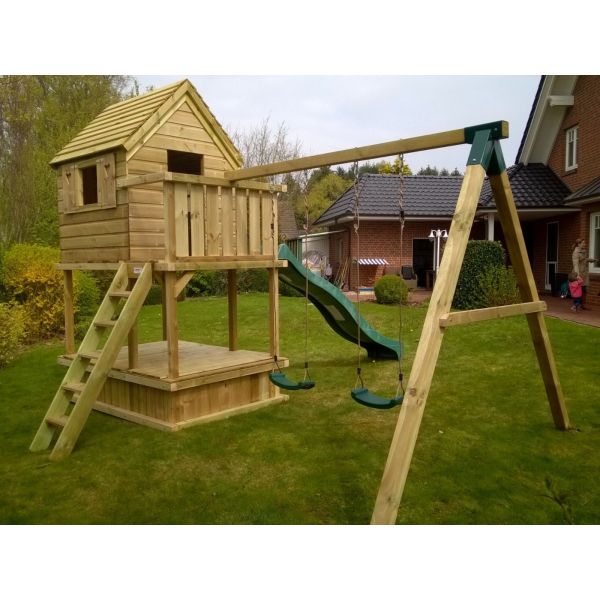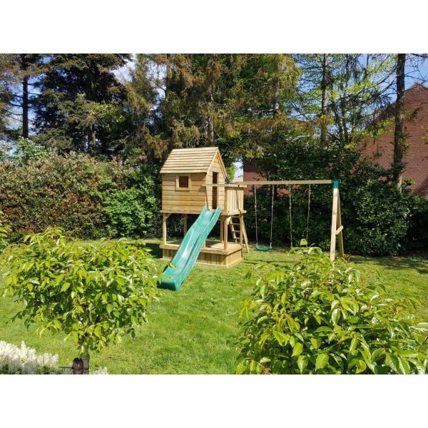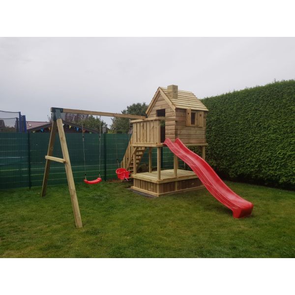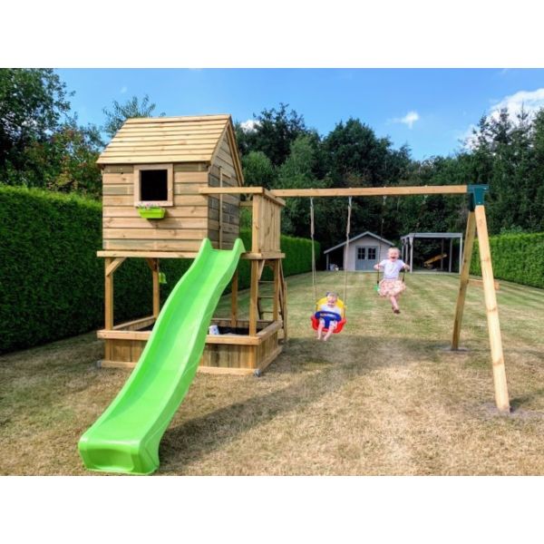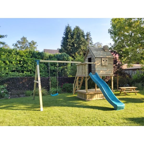 Je kunt zelf het speeltoestel uitbreiden met extra onderdelen (aanbouwschommel, klimwand etc.) of extra's (trapleuning, deur, luikjes etc.). Vergeet niet de schommelzitjes en enkele leuke accessoires mee te bestellen!