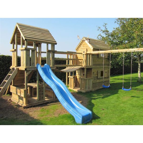 Je kunt dit zelf aanvullen met extra aanbouwdelen (klimnet/-wand, aanbouwschommel etc.) of extra's (deur, luikjes etc.). Vergeet ook niet de schommelzitjes en enkele leuke accessoires bij te bestellen!
