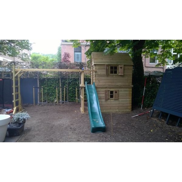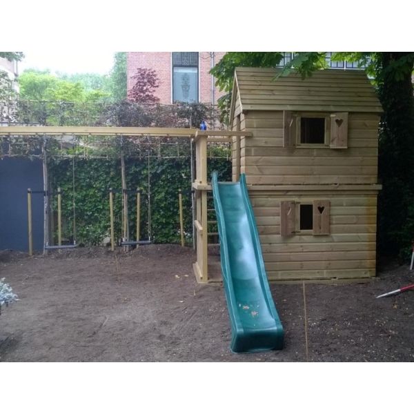 Je kunt zelf het speeltoestel uitbreiden met extra onderdelen (aanbouwschommel, klimwand etc.) of extra's (trapleuning, deur, luikjes etc.). Vergeet niet de schommelzitjes en enkele leuke accessoires mee te bestellen!